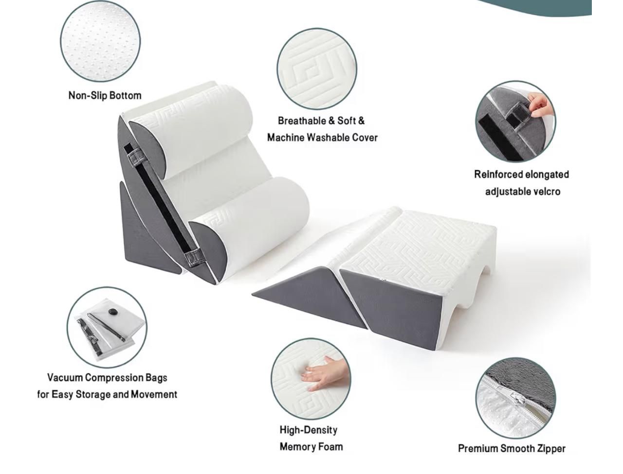 Orthopedic Bed Wedge Pillow Set For Sleeping, Post Surgery Foam For Body, Back, And Leg Relief
