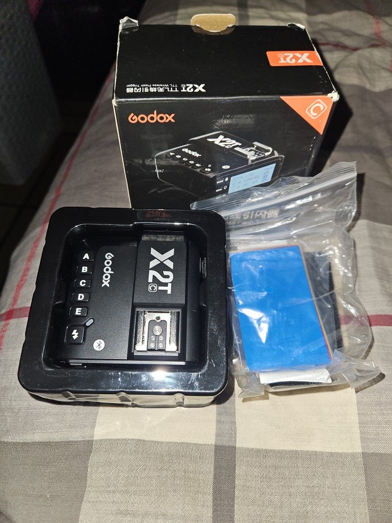 Godox x2t flash trigger Wireless For Canon dslr cameras Used only a couple of times before switched to sony camera. Brand new condition. . . Comes with color skins for adding color to the flash. Never used. Still in original bag.