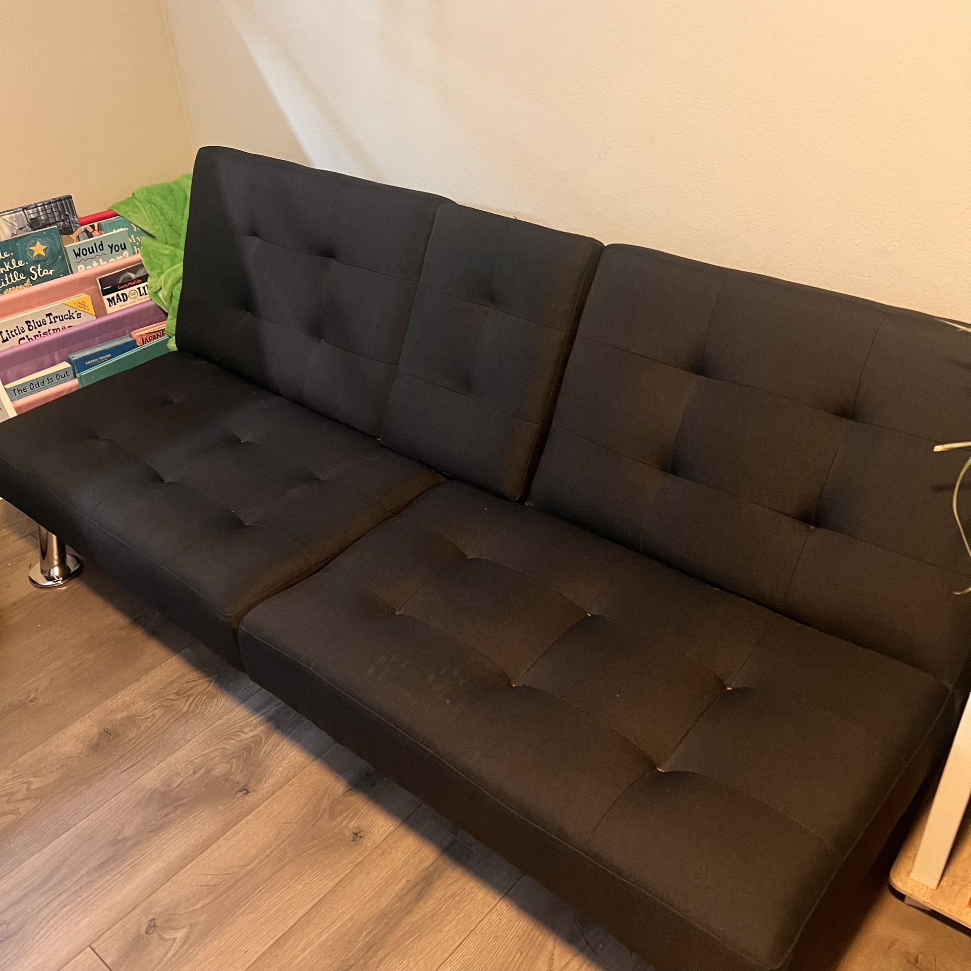 Small futon style sofa, can be laid flat. 65” wide 28” tall We’ve only had it for 2 months. It’s like brand new. We got a bigger couch. This was too small for us. Bought for 140.00. Selling for 75.00 firm