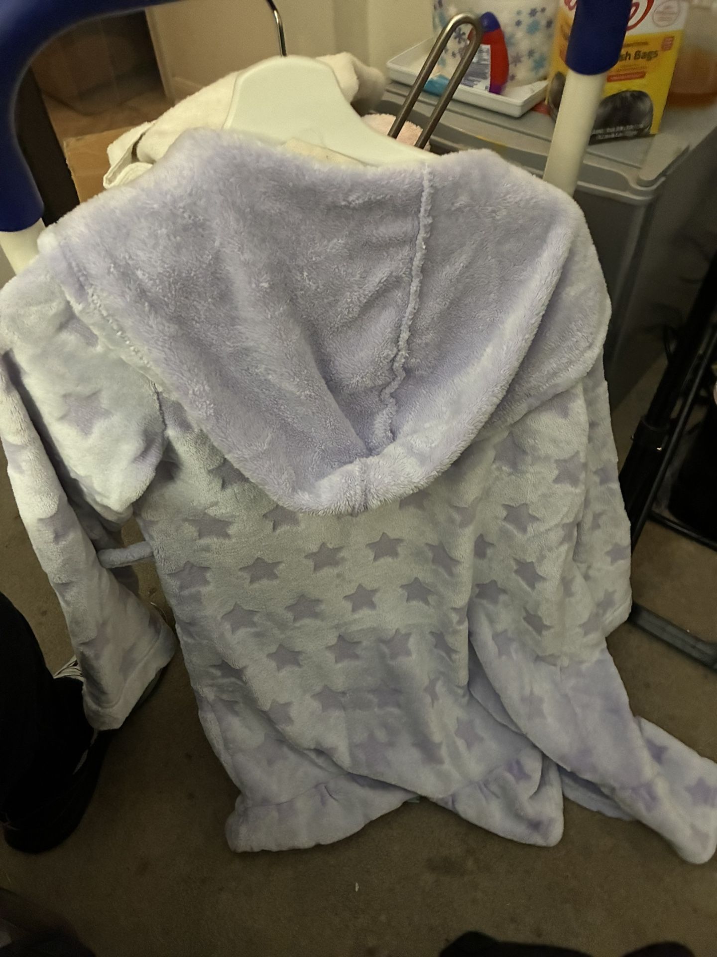 This is a practical new girls basketball age 1012 with purple stars on lavender rogue with a hoodie washed only once 10 years ago