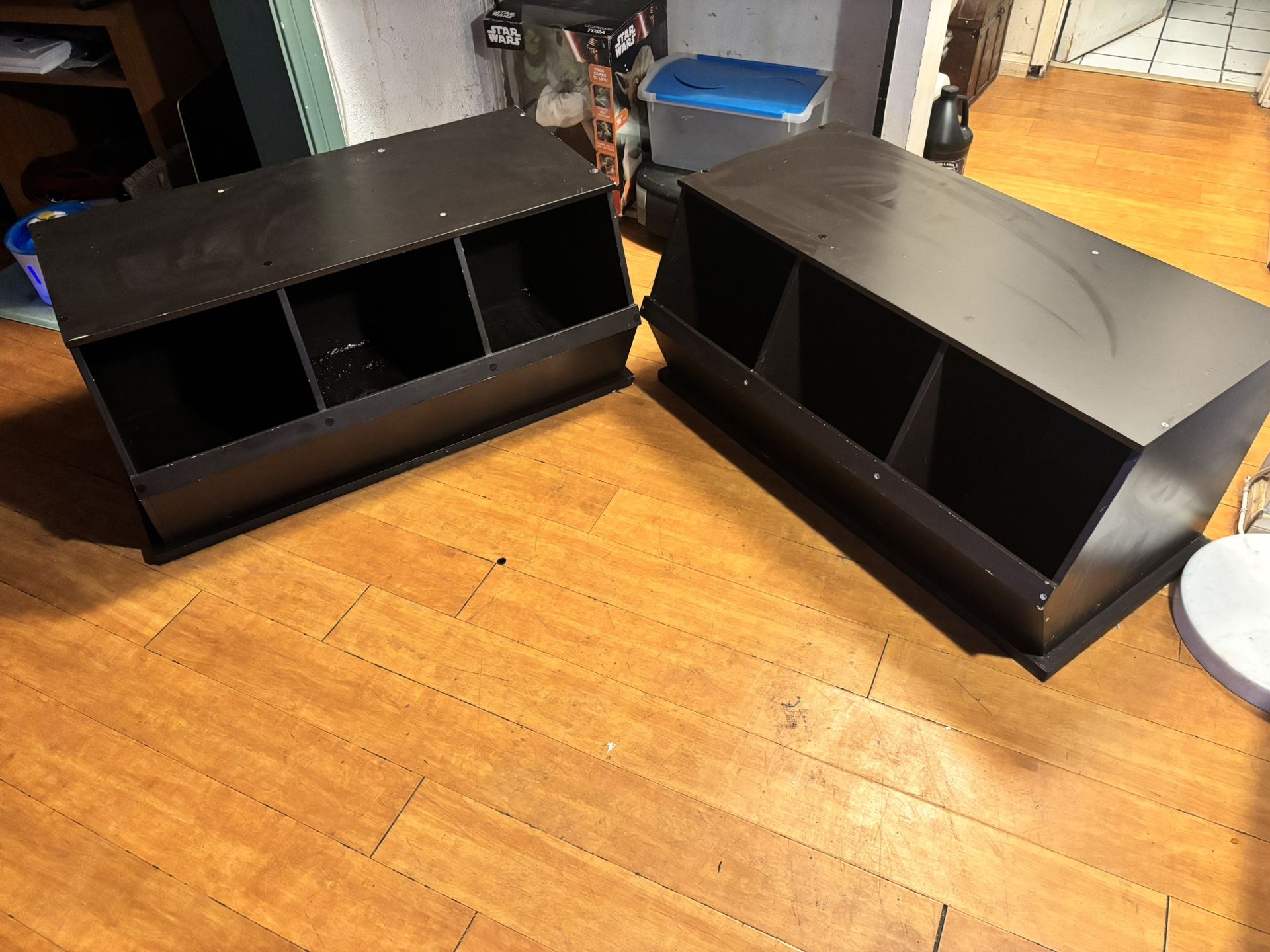 2 brown wooden toy storage. Can be stacked or used separate from one another. Sold together. 36” wide 18” deep 17” tall one unit 34” tall 2 stacked units If you see this post items are available. Pick up in Santa Ana- Newhope/Edinger