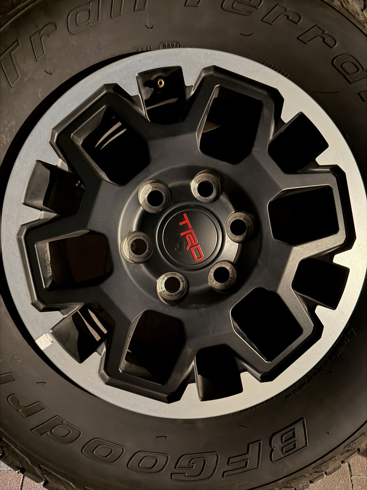 Wheels and tires Off a 2024 Tacoma TRD off road 265/70/17 Good tread on them, no longer needed due to an upgrade +44 offset, total weight is about 67 lbs pick up only