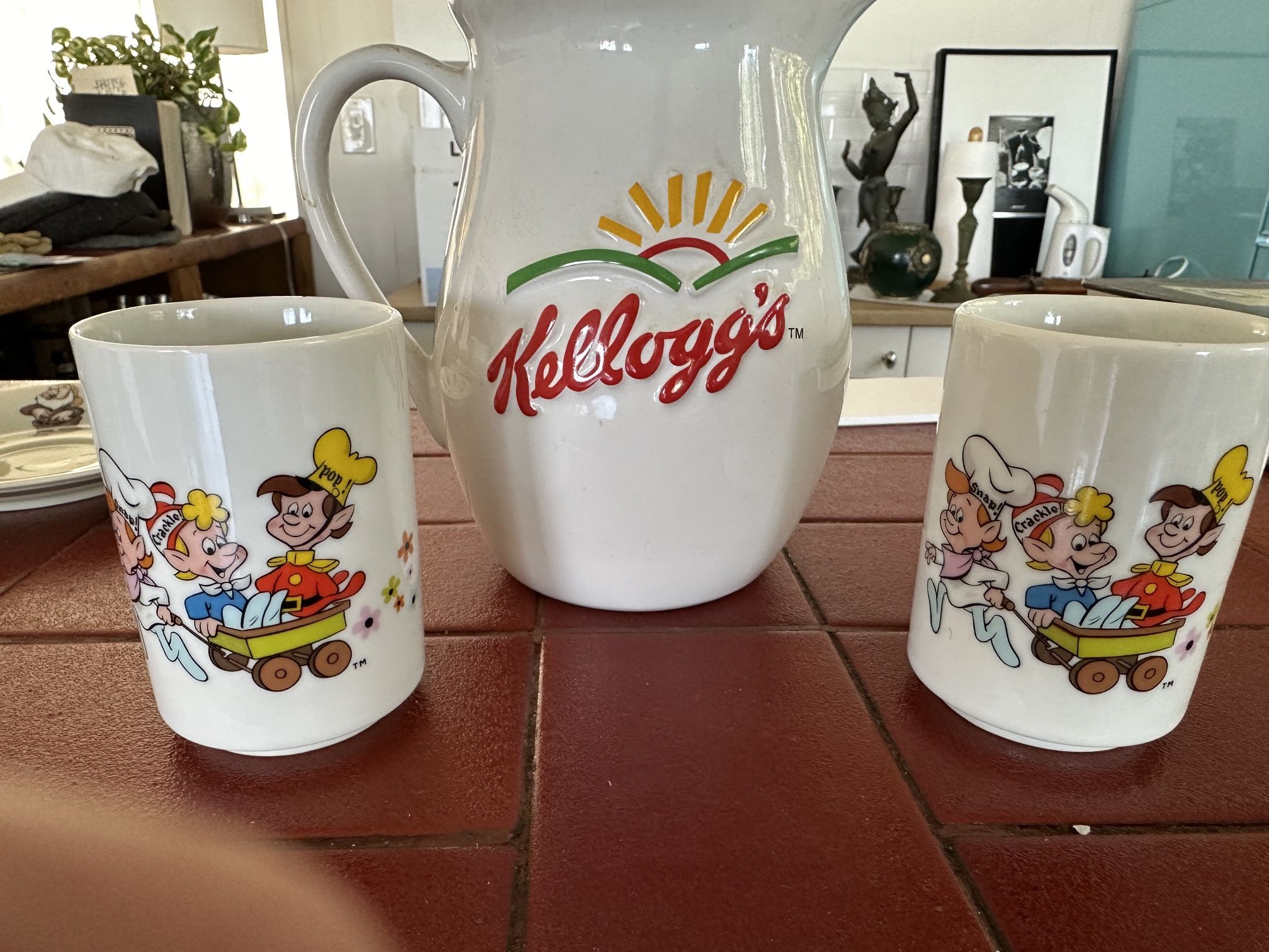 Retro Kelloggs pitcher and mugs for sale. Originally $75. Now $50