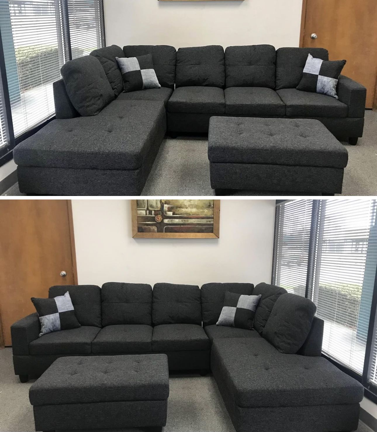 This is item comes brand new in packaging. This is a display picture. Comes with ottoman. We deliver to all areas!