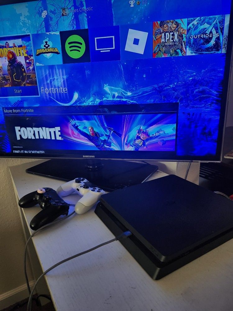 So I'm downsizing, significantly. I have an older model Samsung smart (probably not so much anymore) 40inch TV and paired with my wifes ps4 slim 1tb. Both work flawlessly, the ps4 has been taken care of extremely well,dusted and thermal paste redone last year sometime. Both are just sitting collecting dust. The tv is a Samsung UN40D6400 40in LED 3D tv 1080p. Paired together they run amazing with minimal lag. Great starter kit for someone who just wants to game. All pics attached ,these are not new items ,so don't expect it. Can't upload the videos to show its working properly and quiet but upon request ,ill shoot a text of it running if your so inclined . Ps4 comes with braided hdmi cord ,2 working controllers and a 3rd non working for spare parts . Tv has remote!