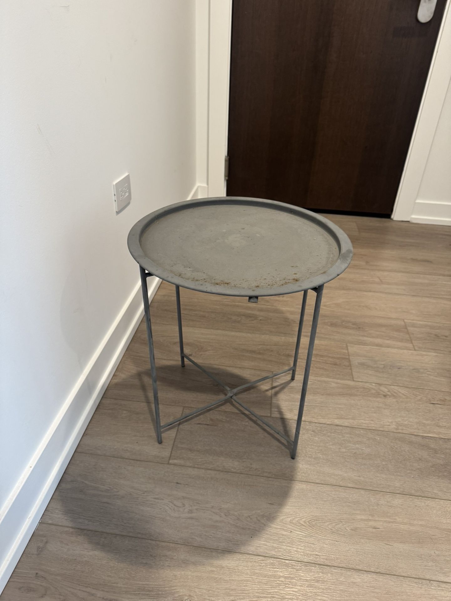 Small 18” x 20” Outdoor Patio Side/End Table – Needs TLC, Great Project Piece! Compact outdoor side/end table measuring 18” wide x 20” high – ideal as an accent table for a porch, patio, deck, garden or balcony. Perfect height for pairing with Adirondack chairs, benches, or lounge seating; holds drinks, plants, books, or small decor easily. Metal construction with slight rust from exposure to the elements – shows typical weathering like surface rust spots and faded finish, but no major structural issues or holes. A quick sand, fresh coat of paint and it’s like new again! Easy DIY refresh for anyone handy. Lightweight, easy to move/transport. Solid overall and priced to move fast as-is. From a smoke-free home in Chicago. Available for Pickup in Old Town.