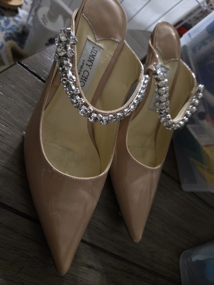 Inspired Jimmy C Nude Pumps Mules Crystal Strap Size 8