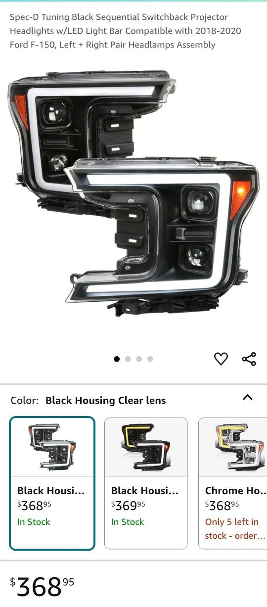 Aftermarket $600 (OBO) Spec-D Tuning Black Sequential Switchback Projector Headlights w/LED Light Bar Compatible with 2018-2020 Ford F-150, Left + Right Pair Headlamps Assembly LED Tail Lights; Gloss Black Housing; Smoked Lens (18-20 F-150 w/ Factory Halogen Non-BLIS Tail Lights)