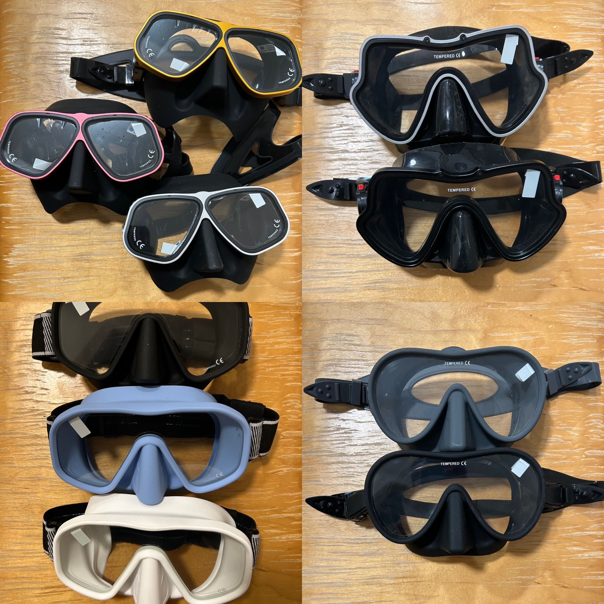 Brand new diving, snorkeling gear Anti-fog glass Masks - $25 (aluminum frame $30) Snorkels - $10 Fins - $20-25 (zoom in to see sizes) Free diving fins - $60