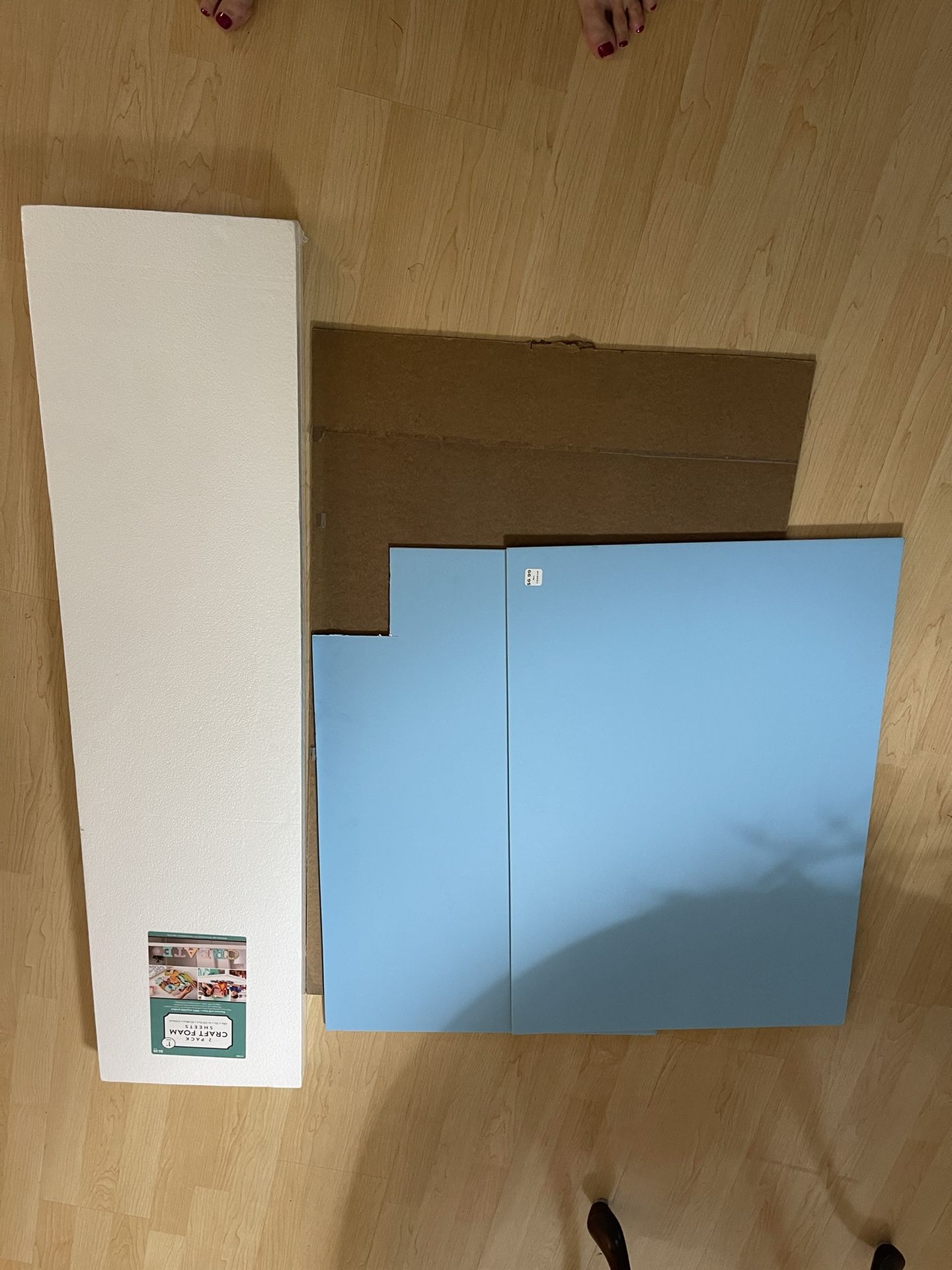 2 pack craft foam sheets - 48”x12”x1” 2 pieces light blue foam board 1 piece particle board/hard board 2 packs balsa wood 1/8”x1/8”x36” (5 pieces/pack)