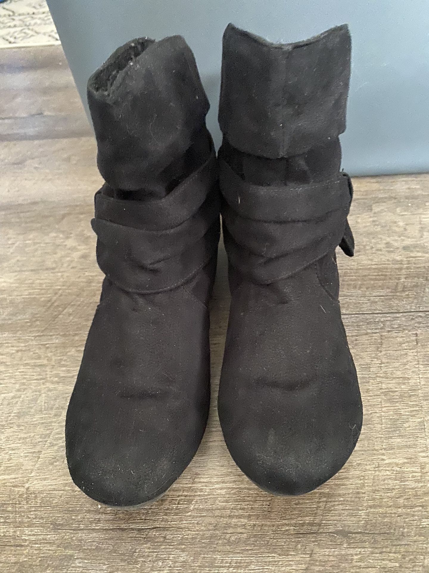 Small black suede boots. Flat. Size 8