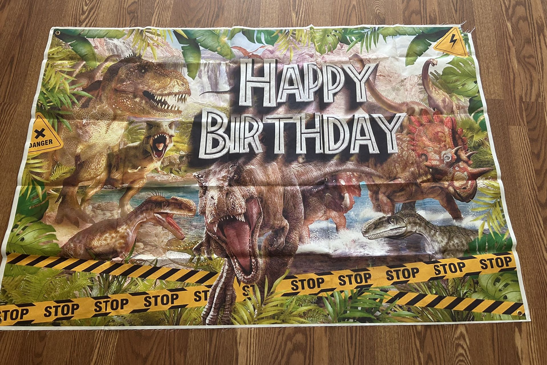 Dinosaurs party banner 5’x3’ is missing a corner please see 2nd photo..