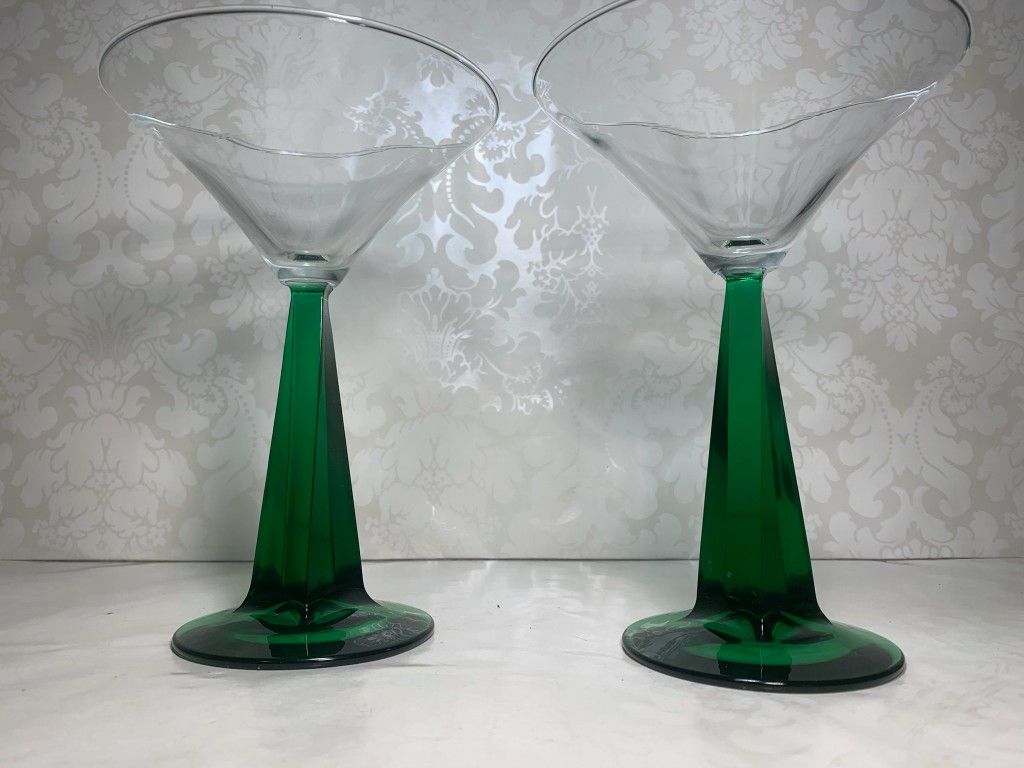 Vintage Emerald Green Twisted Pyramid Martin Glasses