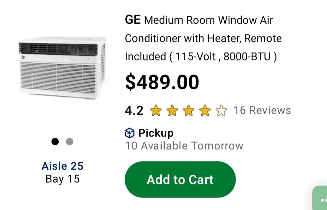 Ge Medium Room Window Ac With Heater Remote Included 8000 BTU Brand New $350.00