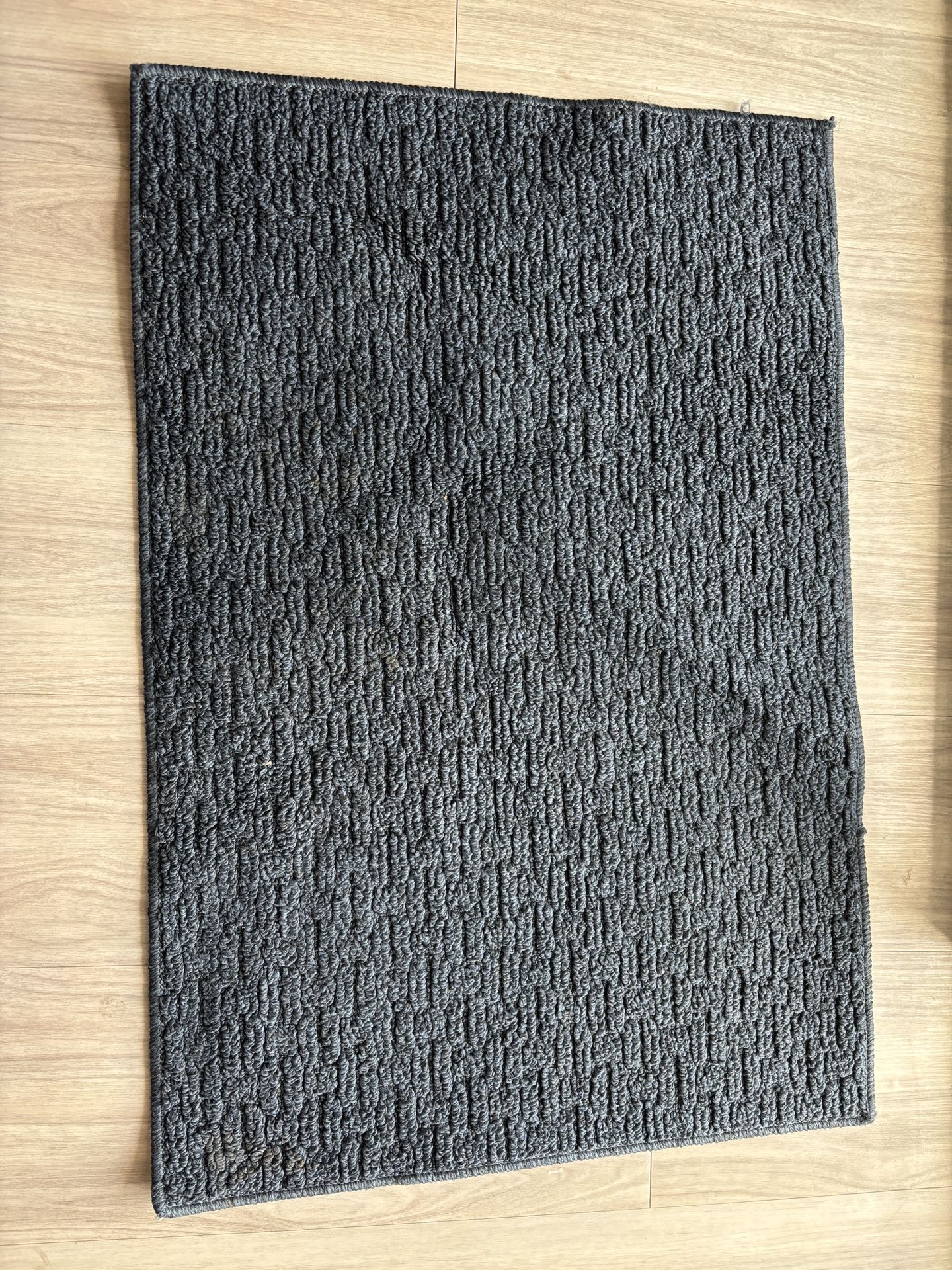 2 bathroom throw rugs and one blue floor mat each approximately 30x20.