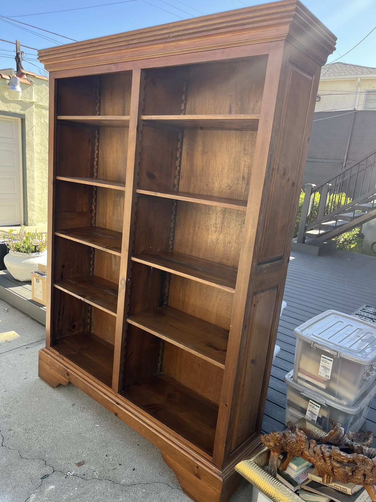 Bookshelf wooden 7ft high 5ft wide.Used needs some polishing