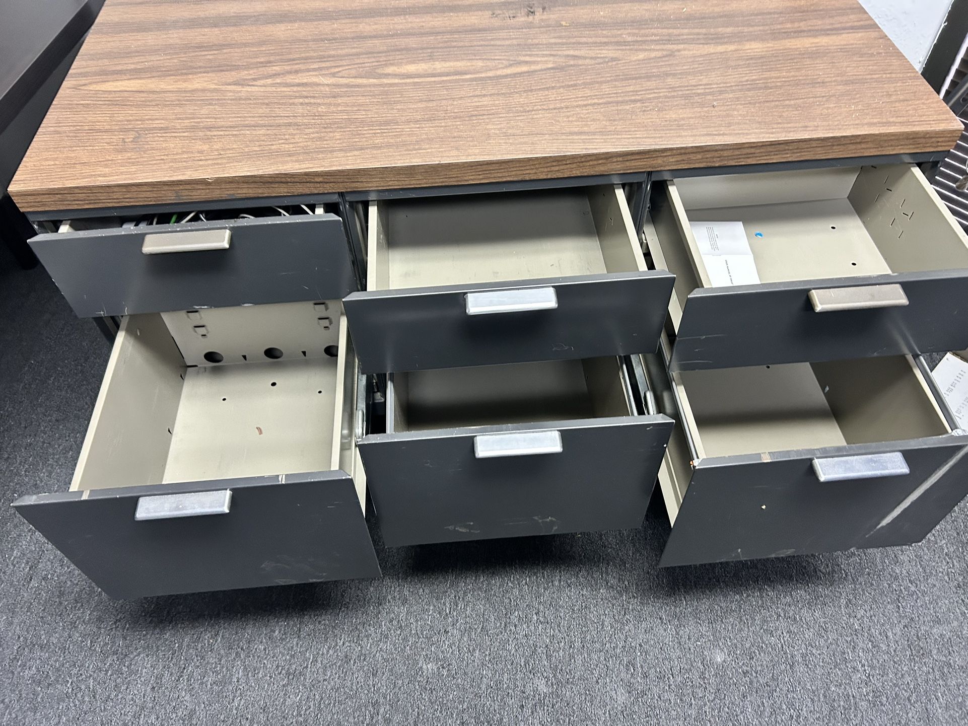 Very unique two files and 3 drawers solid metal not cheap type needs two persons two move it I can deliver for a fee within 5 miles