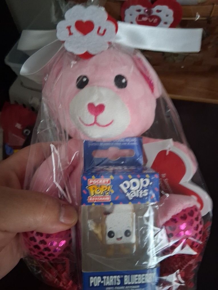 Cute and simple arrangement with a plush and a Funko Pop Keychain