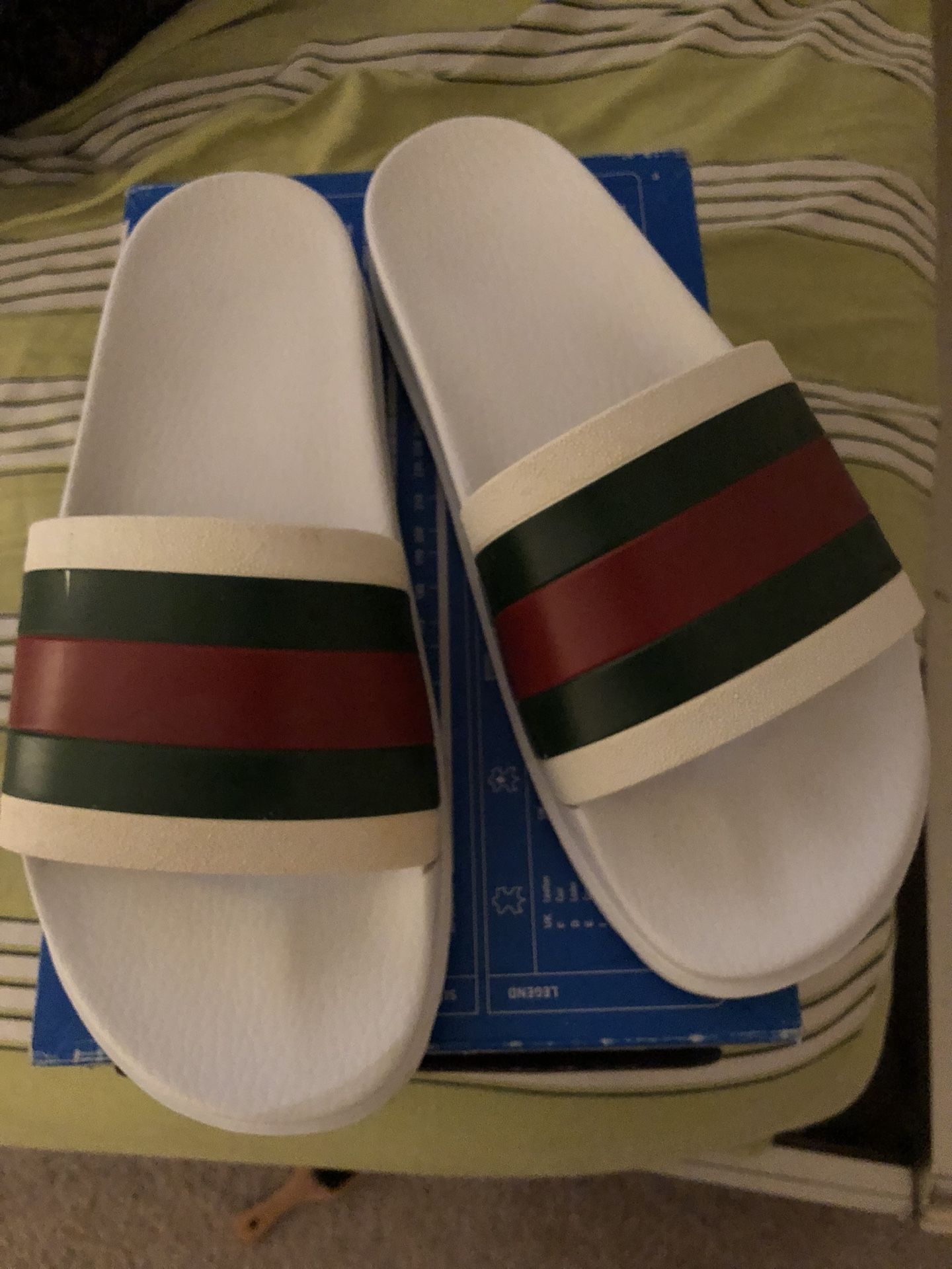 Still like new once only thing is my wife try to clean it with clean only had it on 2 times come with Gucci box and bag