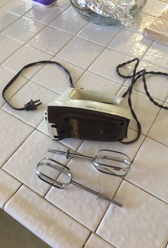 Sunbeam mixmaster hand mixer. Oldy but goody. Works great.