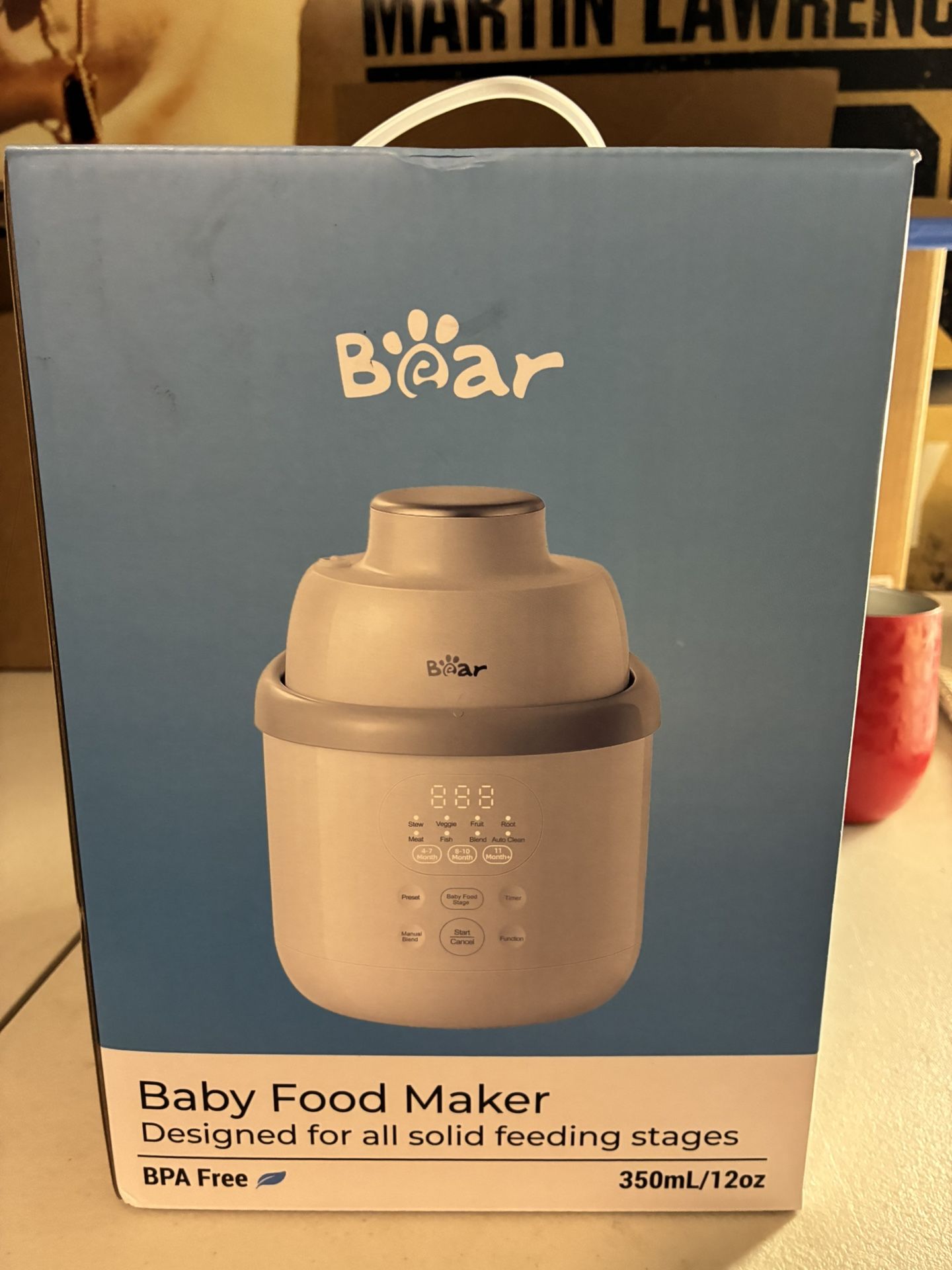Costs 130 on Amazon. Brand new, never opened or used. Material Stainless Steel Brand Bear Color White Product Dimensions 6.7"L x 6.7"W x 9.2"H Power Source Corded Electric Capacity 11.83 ounces ๐ง๐ฟ๐๐น๐ ๐๐น๐น-๐ถ๐ป-๐ผ๐ป๐ฒ ๐๐ฎ๐ฏ๐ ๐๐ผ๐ผ๐ฑ ๐ ๐ฎ๐ธ๐ฒ๐ฟ โ The Bear baby food maker is your ultimate kitchen partner, combining a steamer and blender into one compact device(just 6.7x6.7x9.2inches). With three age stage settings(4-7, 8-10, 11 month+) and one-touch digital menu programs(veggie, fruits, root, meat, fish, and stew), making healthy homemade baby food has never been easier and more efficient for new parents or busy parents. Reclaim precious time and spend less time in the kitchen and more with your little one ๐๐๐๐๐ผ๐บ๐ถ๐๐ฒ ๐๐ฑ๐ฒ๐ฎ ๐๐ผ๐ผ๐ฑ ๐๐ผ๐ป๐๐ถ๐๐๐ฒ๐ป๐ฐ๐ โ Choose between auto or manual mixing modes to precisely control food consistency, meeting your baby's taste preferences. Baby food puree maker comes with upgraded 3D floating stainless steel blades create ultra-smooth purees and adjustable textures, perfectly tailored for your baby's developing palate from 4 to 12 months ๐ฆ๐๐ฝ๐ฒ๐ฟ๐ถ๐ผ๐ฟ & ๐ฆ๐ฎ๐ณ๐ฒ ๐ฆ๐๐ฎ๐ถ๐ป๐น๐ฒ๐๐ ๐ฆ๐๐ฒ๐ฒ๐น ๐๐ผ๐ป๐๐๐ฟ๐๐ฐ๐๐ถ๐ผ๐ป โ Durable, non-toxic, and premium, our stainless steel bowl, cover and blade are free from harmful chemicals like BPA, Lead, and Phthalates. Designed for long-lasting use without wear, tear or leakage, Bear baby blender food maker and steamer give you complete peace of mind. Added safety features include a secure lock(It activates only when the top lid are securely in place) and completion reminder, ensuring a seamless cooking experience from start to finish ๐ก๐๐๐ฟ๐ถ๐ฒ๐ป๐-๐ฃ๐ฟ๐ฒ๐๐ฒ๐ฟ๐๐ถ๐ป๐ด ๐ฆ๐๐ฒ๐ฎ๐บ ๐ง๐ฒ๐ฐ๐ต๐ป๐ผ๐น๐ผ๐ด๐ โ Baby food steamer designed with gentle stew method preserves vitamins B and C far better than harsh, direct-steam cooking. This 100% nutrition lock-in ensures every meal retains its natural taste, texture, and essential nutrients, making it gentle on tiny tummies and easy for your growing baby to digest ๐๐น๐ฒ๐ฎ๐ป๐๐ฝ ๐ถ๐ ๐ฎ ๐๐ฟ๐ฒ๐ฒ๐๐ฒ - All detachable parts except the top lid are dishwasher-safe. Plus, the built-in auto-clean function powerfully blasts away food residue in seconds. Free yourself from heavy cleaning tasks and enjoy more quality moments with your family ๐ฃ๐ฒ๐ฟ๐ณ๐ฒ๐ฐ๐ ๐๐ถ๐ณ๐ & ๐๐ฎ๐ฐ๐ธ๐ฒ๐ฑ ๐ฏ๐ ๐ข๐๐ฟ ๐ฃ๐ฟ๐ผ๐บ๐ถ๐๐ฒ โ Our baby food blender is a thoughtful gift for baby showers, Mother's Day, Thanksgiving, or Christmas. Bear provides 1-year warranty, 24/7 customer service, and lifetime technical support. We're here to help whenever you need us ๐ฃ๐ฟ๐ผ-๐ง๐ถ๐ฝ ๐ณ๐ผ๐ฟ ๐๐ฎ๐ฟ๐ฒ & ๐ ๐ฎ๐ถ๐ป๐๐ฒ๐ป๐ฎ๐ป๐ฐ๐ฒ โ Water stains or limescale on the stainless steel base can result from minerals in tap water. ๐งฝ To maintain your baby food processor's performance and appearance: โ For best results, use purified or filtered water; โกWipe all parts dry with a soft cloth after each use; โขPeriodically deep-clean the water tank with white vinegar or a descaling solution