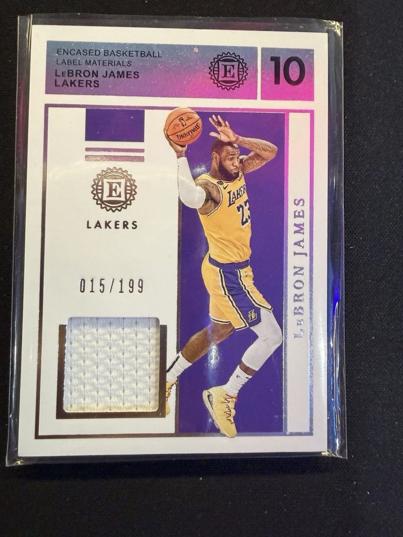 2019-20 Panini Encased Label Materials LeBron James Game-Worn Jersey 15/199 Lakers