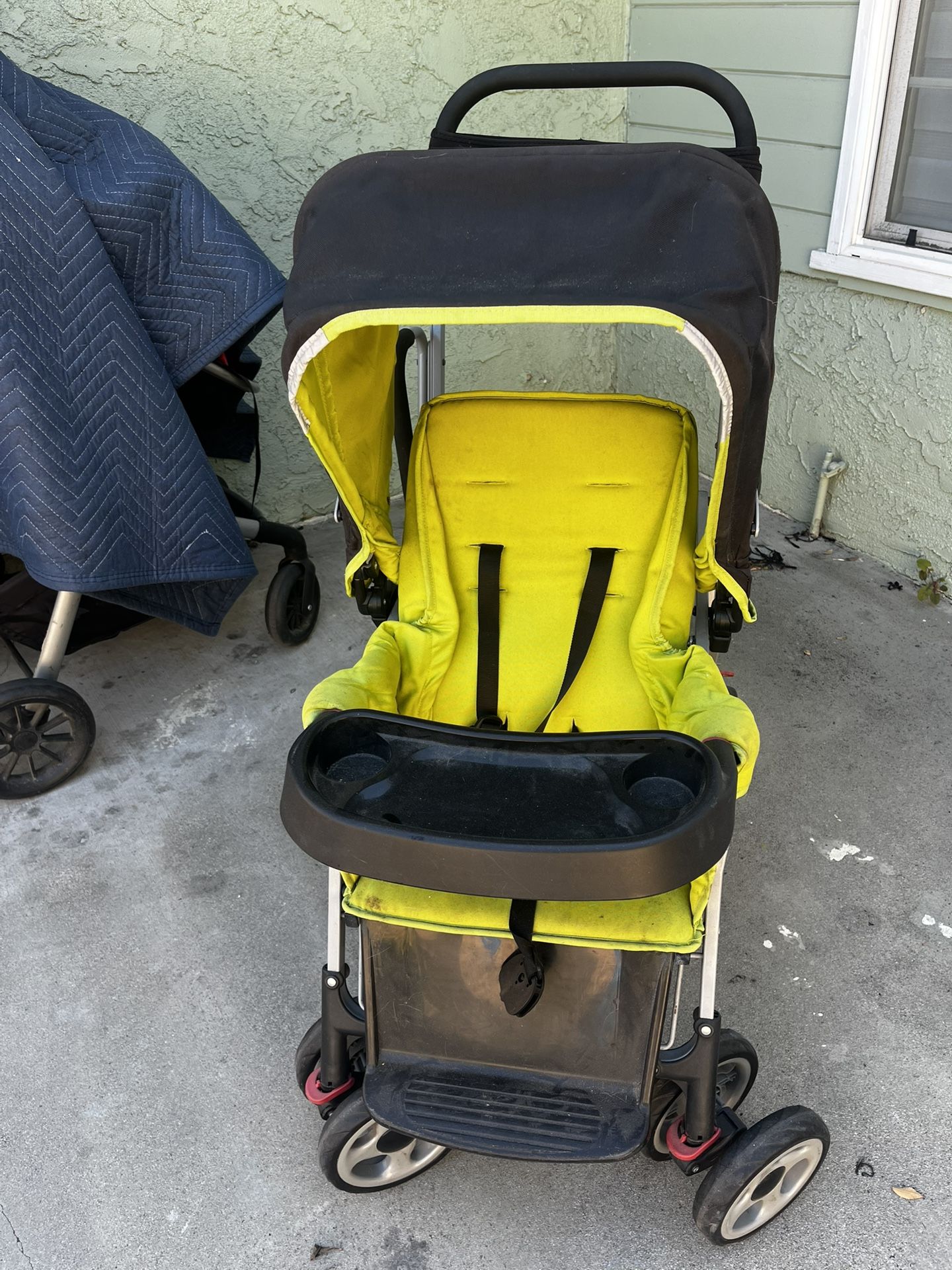 Pick up in Torrance.. Original price of this is $249 to $279 plus tax. The Caboose Sit And Stand Tandem Double Stroller is the perfect solution for growing and active families! With a 3-position reclining seat, snack tray, rear bench, and standing platform included, this stroller easily accommodates infants and toddlers alike. Plus, with a maximum weight capacity of up to 90 lbs, the Caboose stroller has the capacity of a double stroller –– and is the size of a single stroller. This is an incredible value with the INCLUDED parent organizer, universal infant car seat adapter, and the deluxe 50+ UPF canopy!