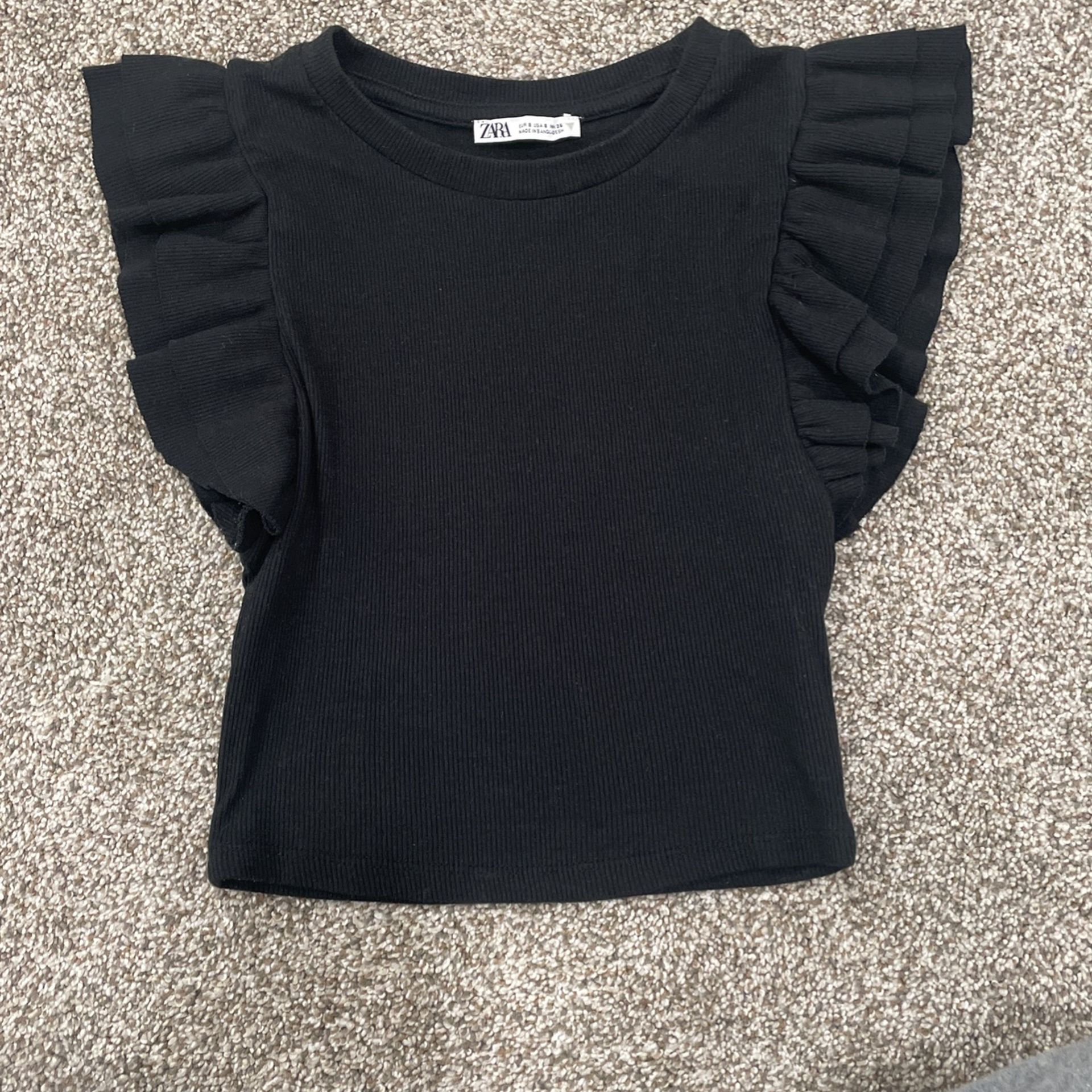 Zara Ruffled Sleeve Ribbed Top in Black Size: Small Barely Worn Local Pickup, cash offer only please