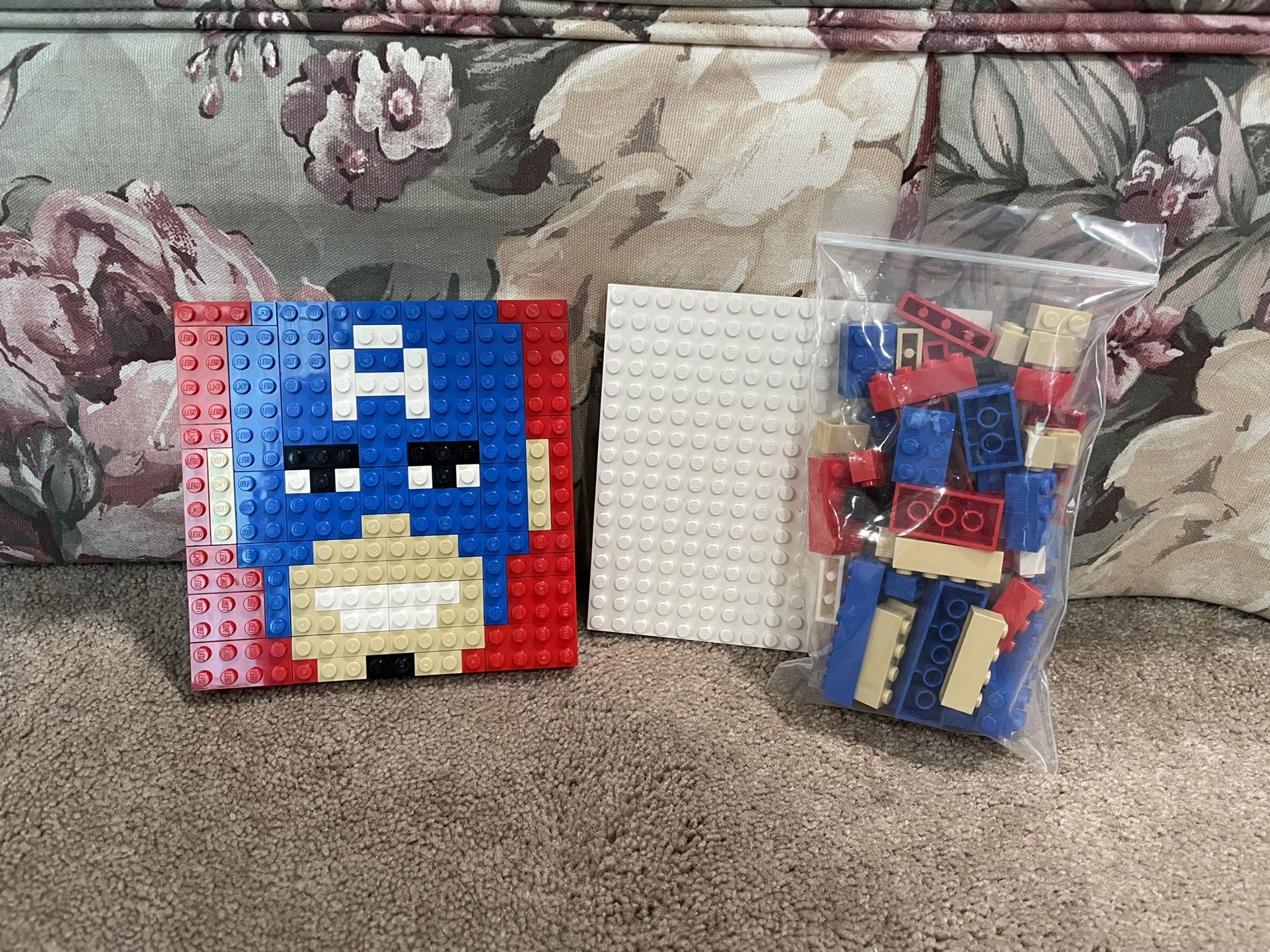 Lego Captain America Mosaic Build This was a promotional build given out at Toys R Us to promote the CA Civil War movie in 2016. Comes with a somewhat unique baseplate and basic bricks. Have 2 available as pictured, $10 each or $15 for both Open to offers, check out my page for more lego