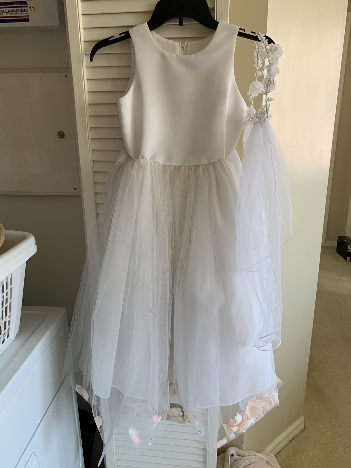 Good condition paid $150 - dress has peach flowers in bottom . A few small holes in tulle but hard to notice . Great fir weddings or special occasions.