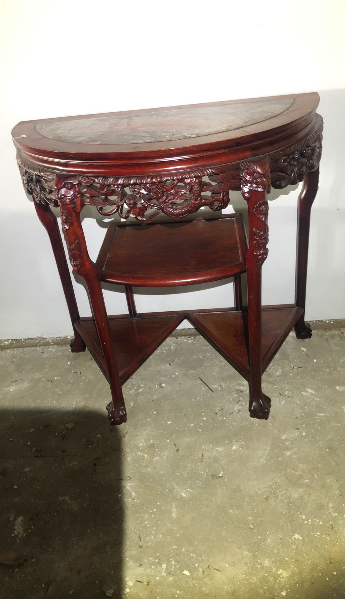Marble top carved oriental half table