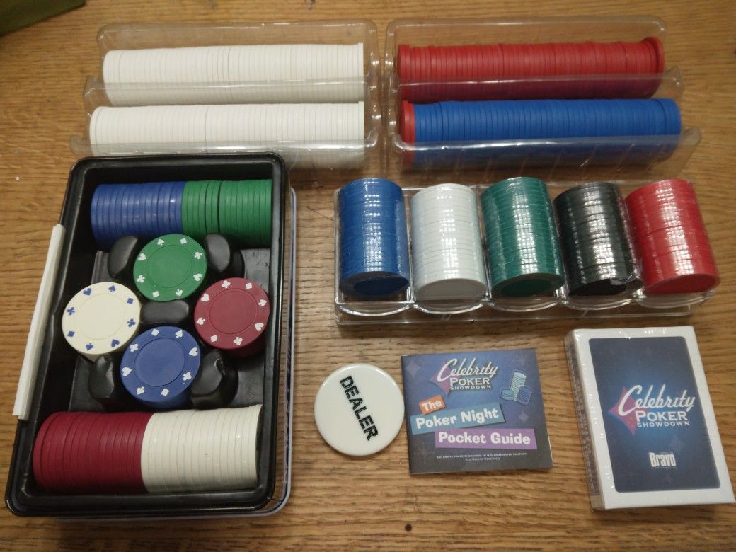 *****ALL NEW**** CLAY POKER CHIPS ...and...Accessories ***...SEE PICS...*** INCLUDES: (1) DEALER Button (1) NEW Deck of Playing Cards (1) Hard Plastic Chip Rack w/ Five Colors of Chips (1) Metal Chip Storage Box w/ Four Colors of Chips (2) Rows of White Chips (1) Row of Red Chips (1) Row of Blue Chips (1) "Poker Night Pocket Guide" ..........You Pick Up.......... Vancouver...Orchards Area ***TEXT ONLY*** Please... Contact...SUSAN... (contact info removed) Thanks!!!