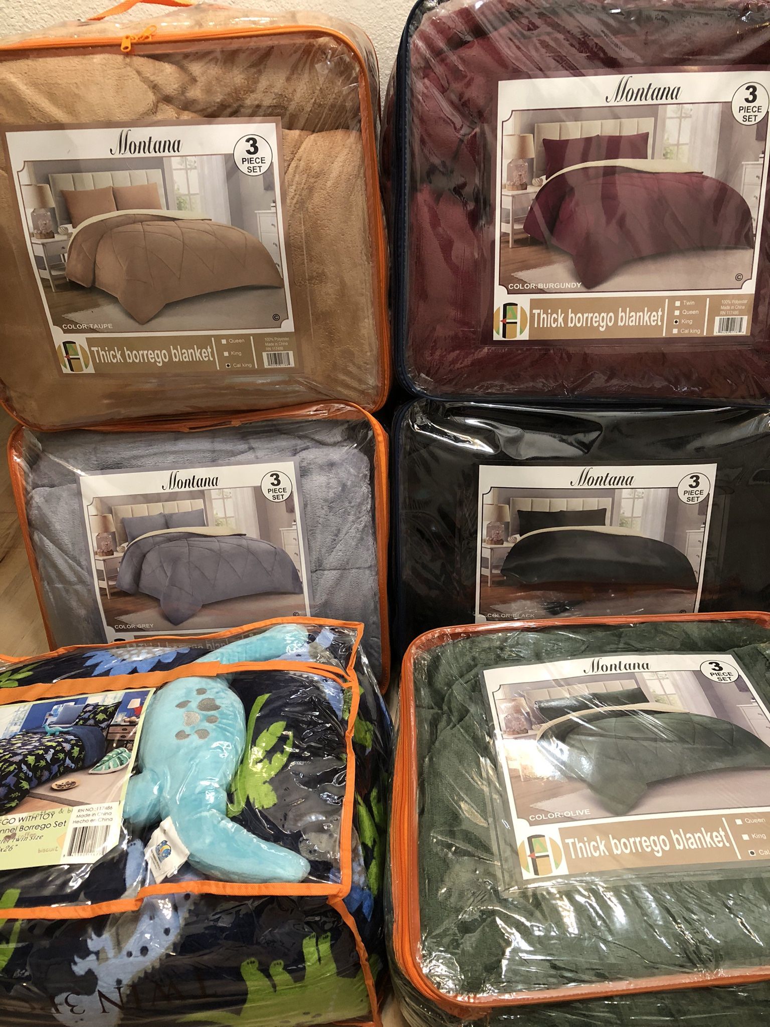 New blankets. We have blankets all sizes. Prices varies depending on the blanket from $15-$40. We are located in Rialto