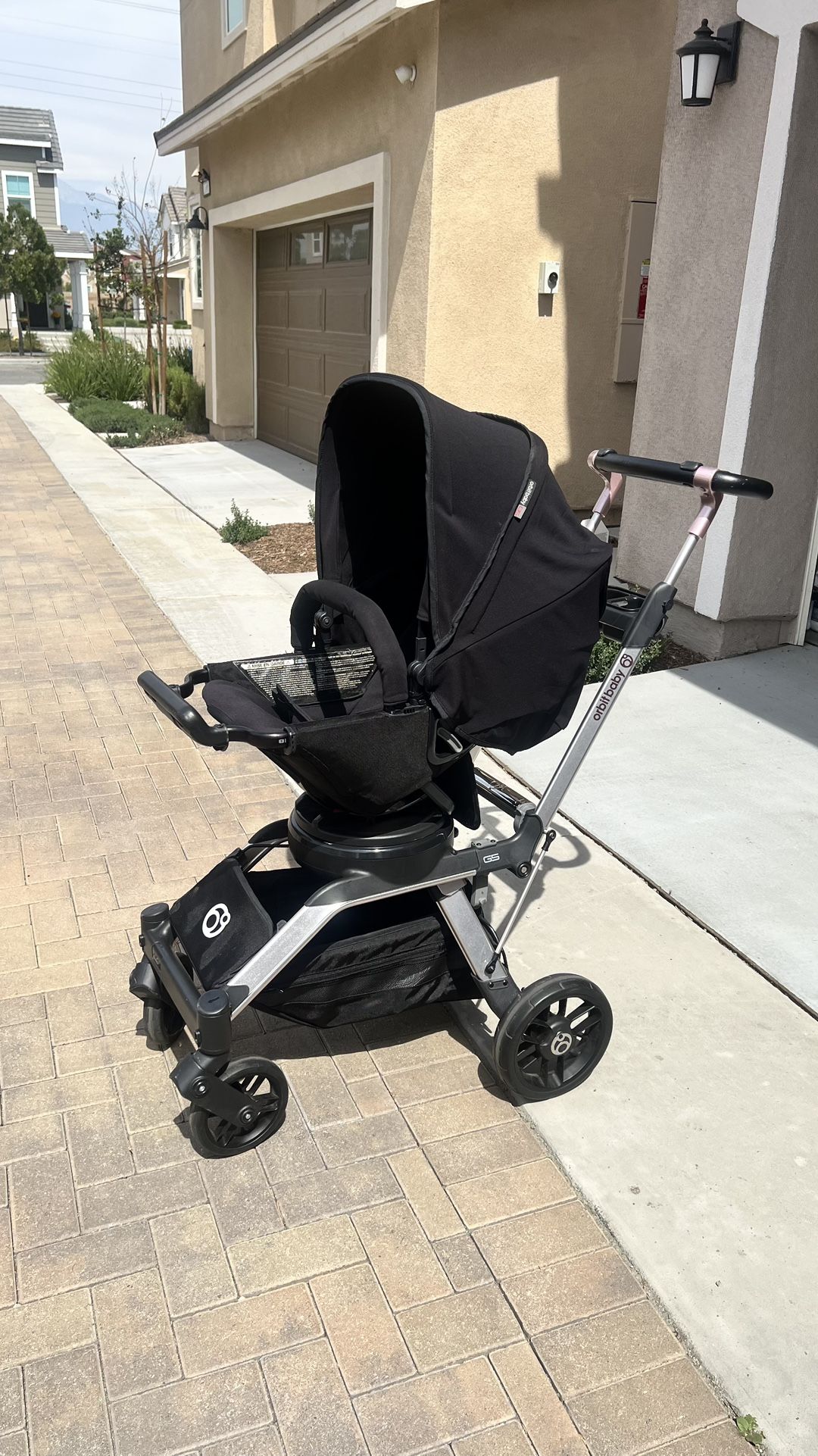 G5 Stroller OBO. This luxe stroller features premium materials and an innovative SmartHub™ that rotates 360-degrees so that you can dock your little one's seat and go. This complete package includes the stroller base with built-in cupholder and key tray, seat/bassinet frame, seat fabric, removable cargo basket, removable support bar, UPF sunshade and shoulder pads. Additional burnt orange sunshade included.