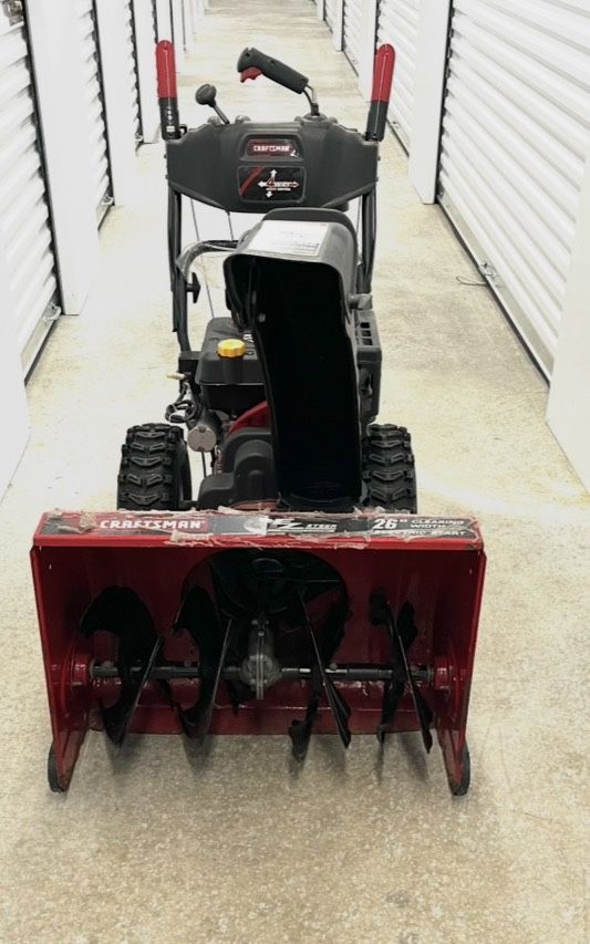 Equip yourself for winter with the Craftsman 28 Inch Snow Blower, a reliable two-stage machine designed to clear your driveway and sidewalks with efficiency. Powered by gasoline, this snow blower is built for robust performance, ensuring you can tackle even the heaviest snowfalls with ease. The model comes with an electric start feature, providing you with a convenient and user-friendly experience. Its ample clearing width of 28 inches makes short work of snow removal, leaving your outdoor spaces safe and accessible. Embrace the colder months with confidence with this robust and durable snow blower by Craftsman. This machine has a 28” cut path and a BIG engine. This will flat clear some snow! Specs on the Snow Blower: 6 forward and 2 reverse speeds Electric start Tire Type: X-trac Tire Size: 15" x 5" (38.1 x 12.7 cm) Impeller Diameter: 12” Auger: Clearing Width: 28" (71.2 cm) Clearing Height: 21" (53.3 cm) Material: All steel Chute Material: Polymer Turning Radius: 180° Max Throwing Distance: Up to 35 feet (10.67 m) Specs on the engine: