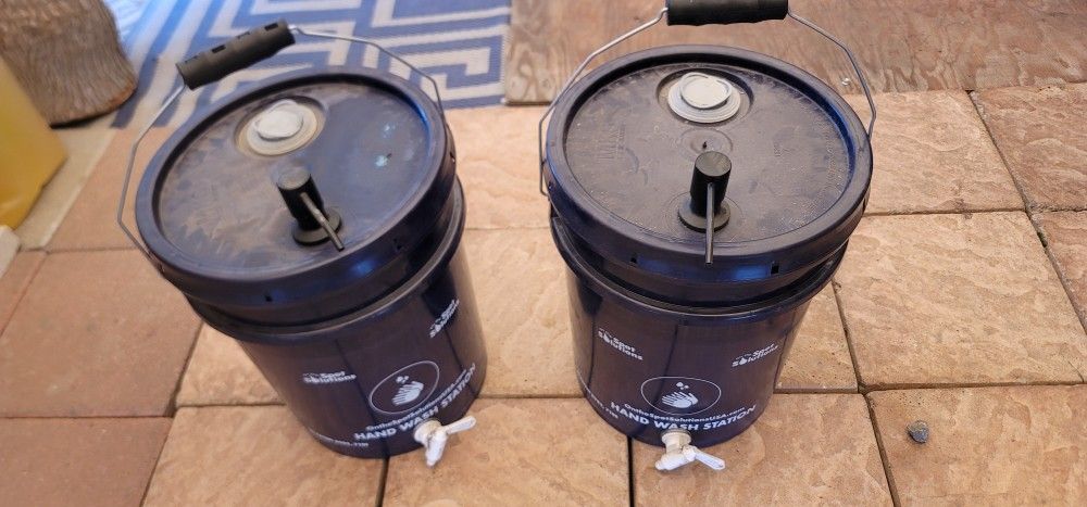 2 Hand Washing Station Buckets With Soap Dispensers Built In. $75.00 For Both
