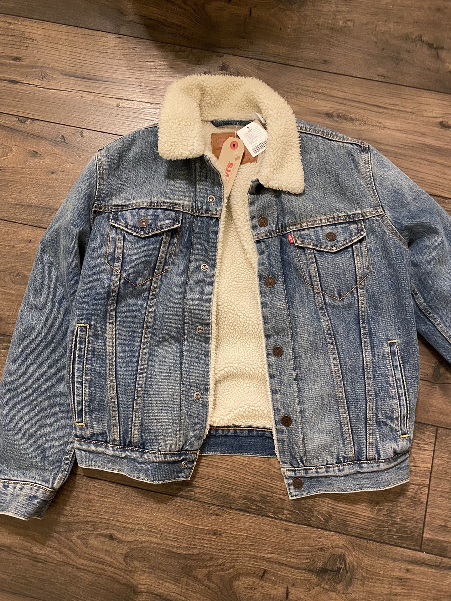 Brand new Levi denim Sherpa jacket normally 125 but selling for 60. Never worn just too small for me.