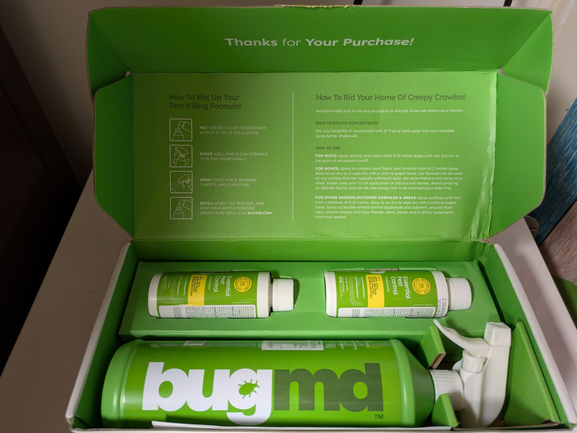 FREE:: New BugMD Spray Bottle (empty), & Liquid Concentrate Bottles (full) x2; • fcfs • Porch Pickup Only. • If it's listed on the site, it's available. • Thank you in advance for patience! ___________________________________ • One of the Ingredients is Cloves. That was not mentioned in the description when I purchased this product from Home Depot. I had multiple products to use and by the time I got around to considering to use this one, the return policy was no longer valid. • Box opened for photos of bottles only. And to confirm the Ingredient of Cloves 3/17/26. • I take Allergy Shots for Cloves for the last four years so my sensitivity has decreased but why take the chance. • I'd rather not turn a brand new product into our local City Dump at the Rodeo Grounds for Chemical Clean Up Day next month in April if someone can put it to good use.