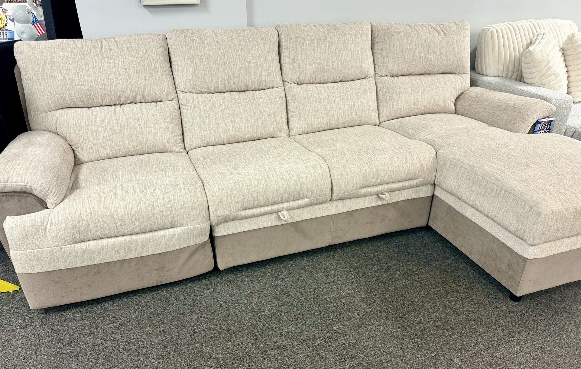 Blow Out Sale Going On Now😱Stunning Beige Pull Out Sectional With One Power Recliner Only $1299