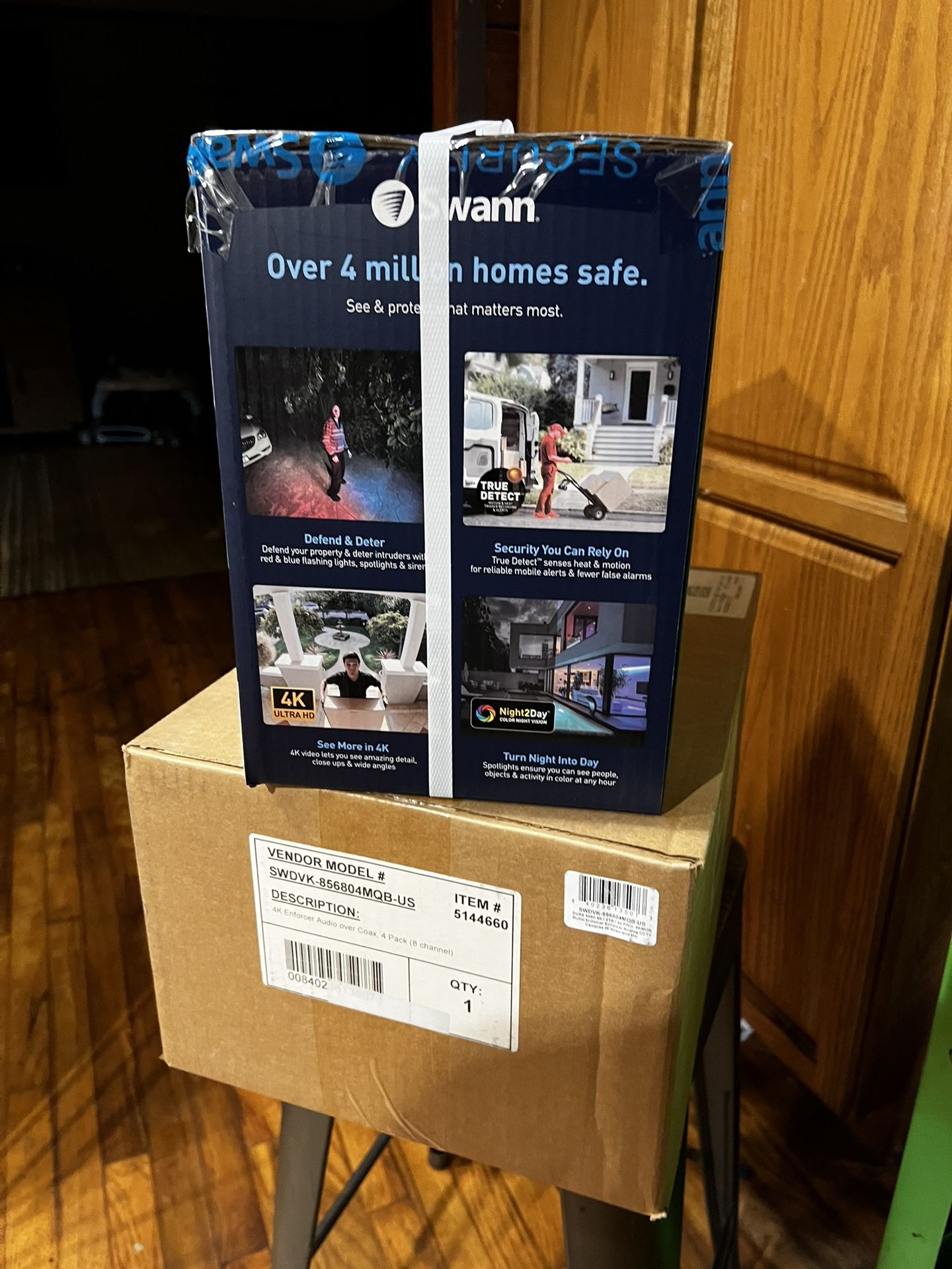 250 or best offer I have of Swann Pro 4K Ultra HD, 8 Channel Security System, 2TB NVR, 4 Bullet PoE IP Cameras Outdoor, Wired Surveillance CCTV, Heat Motion Vehicle Detection, LED Light, 24/7 Recording Security Camera,