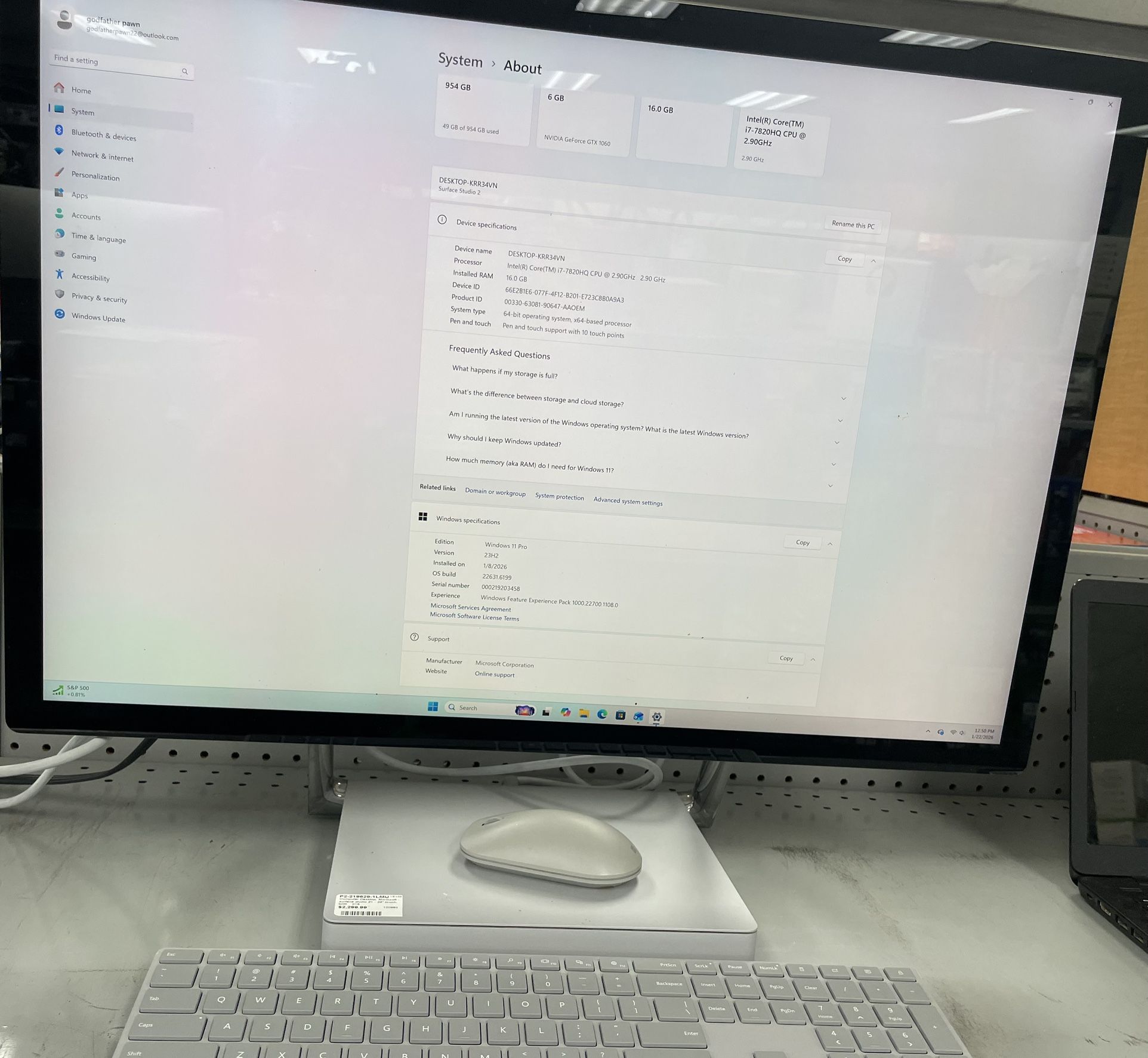 Microsoft Surface Studio 2 , 28” Windows 11 2.9 GHz Intel Core I7 Nvidia GeForce GTX 1060 16gb 954 ssd Touch screen