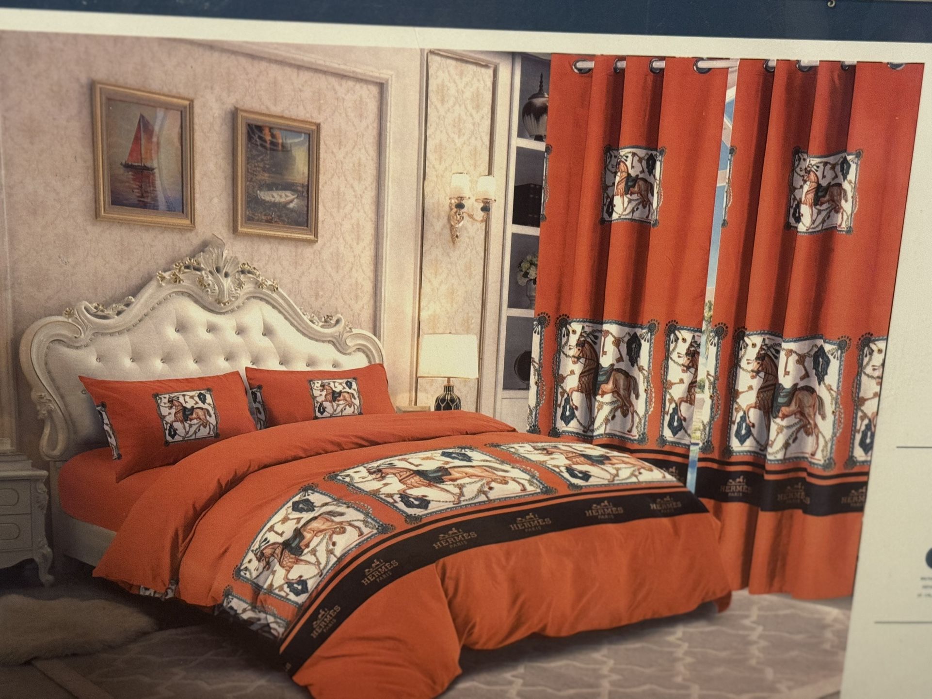 New King 100% cotton 6 piece incl( including curtains & no blankets included) 2 available ( $100 for 2 of them) $55/ for 1 sets