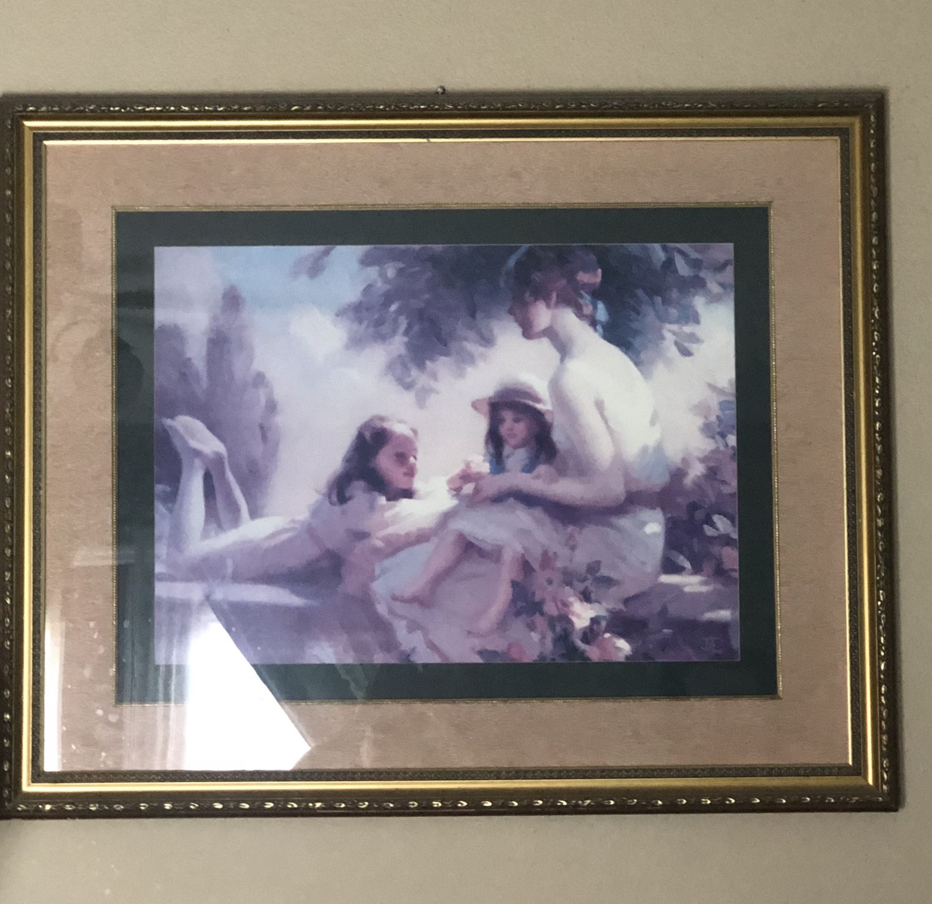 Gorgeous green and gold matted wall Art, size 34” x 42”