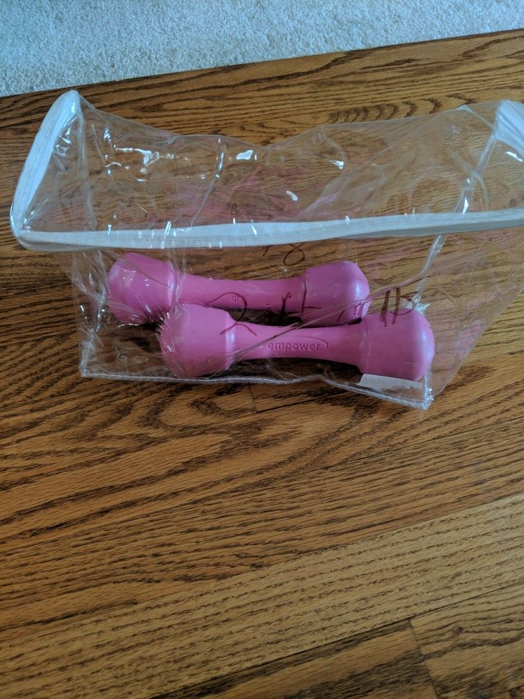 These two pound free weights are an excellent condition great for walking to add a little bit of strength training to your cardio workout. Perfect size grip too for women ! They are durable yet soft plastic exterior so won't cause callouses like medal grips. Can be used in group classes too if you want to add some resistance training