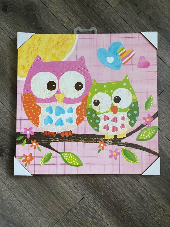 Brand new, in package owl canvas art. Dimensions - 21” x 21” Must pick up in Temescal Valley. Zelle, Venmo, or cash.