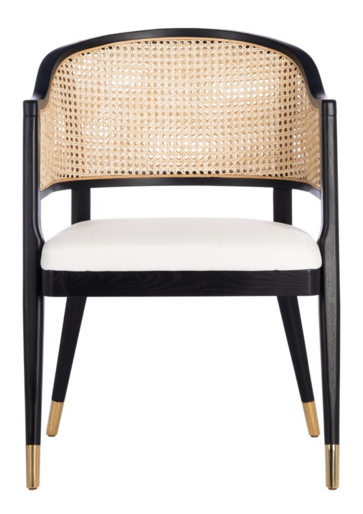 Brand new! Love it but it does not match my dining side chairs from a different manufacturer. Black frame, rattan back, upholstered seat, brass leg caps. Could use in dining, living, office, entry, very versatile. Paid $450! Safavieh brand, still sold online if you wanted to buy additional chairs. Great as dining or accent chair. Cash, Venmo, or Zelle. Pickup is near Addison and Western Similar to Crate & Barrel, Pottery Barn, West Elm, CB2, Arhaus