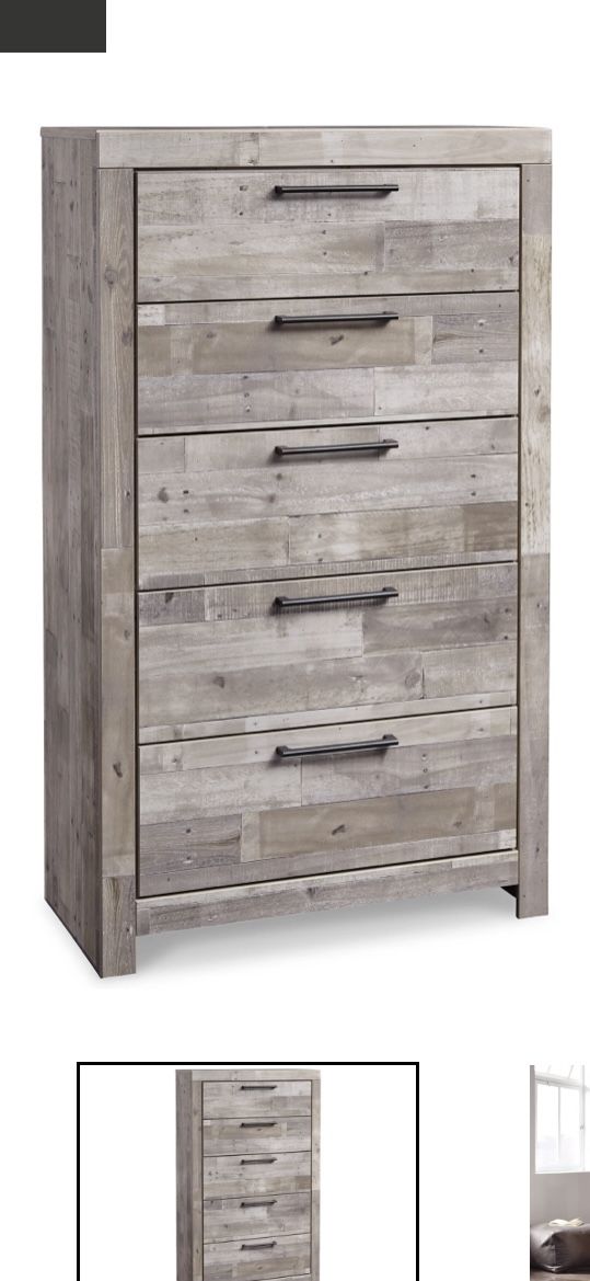Great 5 drawer tall dresser in great shape. Drawers are well made and slide easily. Clean, gently used, non smoking home, no pets. Description Butcher block has long been a staple in the kitchen, but the Effie chest of drawers beautifully transforms it into something new in the bedroom. Nicks and gouges give each piece the one-of-a-kind look and feel of reclaimed wood lending an urban farmhouse aesthetic at a comfortably affordable price. When space is an issue, you don’t have to long for style—five roomy drawers beautifully accommodate. Made of engineered wood (MDF/particleboard) and decorative laminate Butcher block, whitewash finish over replicated pine grain with authentic touch Drawer pulls in antiqued gunmetal finish 5 smooth operating drawers with faux linen lining Dimensions Width: 31.73" Height: 53.94" Depth: 15.31" Additional Dimensions Top drawer interior (2) Width : 24.50" Top drawer interior (2) Depth : 13.00" Top drawer interior (2) Height : 0.20" Drawer interior #3,4,5 Width : 24.50" Drawer interior #3,4,5 Depth : 13.00" Drawer interior #3,4,5 Height : 0.26"