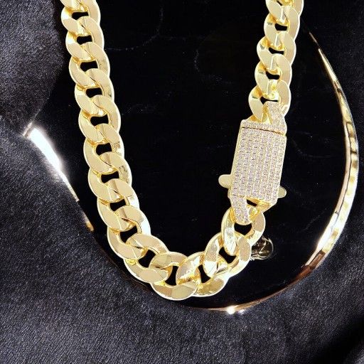 18k Gold Plated Over Sterling Silver Cuban 20" chain w/ CZ Clasp 100 % tarnish free guaranteed!