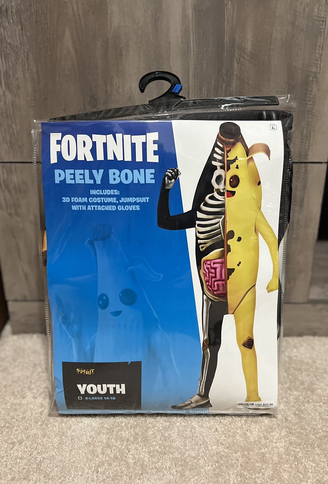 Spirit Halloween Fortnite Peely Bone Banana Youth XL 14-16 Costume Skeleton