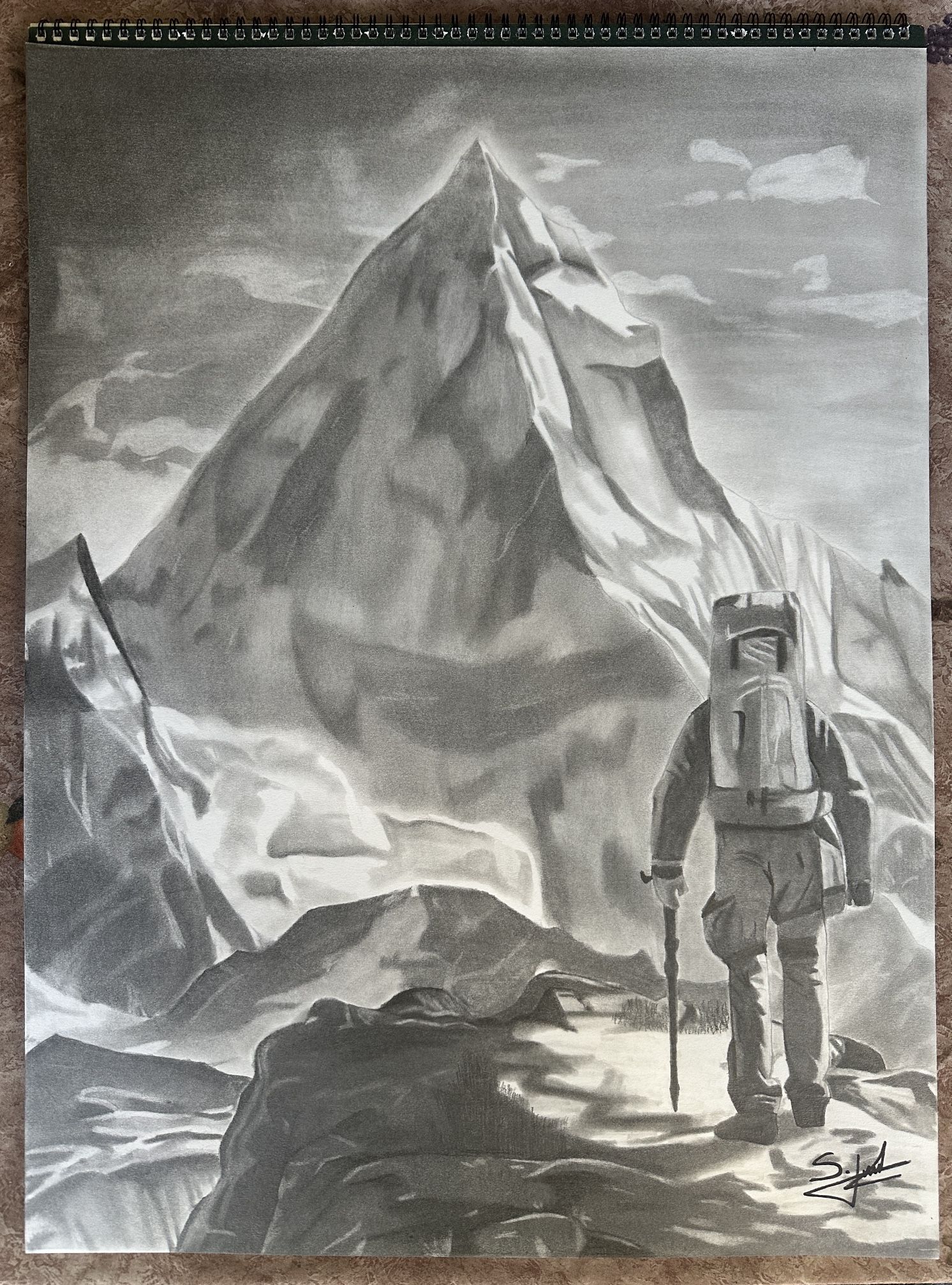 This is a graphite drawing I named “Summit’s Gaze” the original 1of 1. DOES NOT COME WITH FRAME. The size is 18x24in and it is signed by me. I have more on sell. Selling my art pieces for college so buying them would mean a lot. Thank you so much! God bless